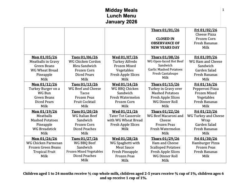 This Month's Menu Menus are in JPEG format. Right click to open in a new tab or save to your computer.